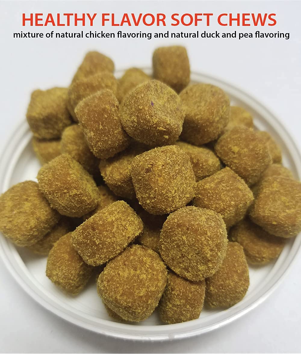 Your dog will love this tasty sugar-cubed size supplement. It contains a mixture of all-natural chicken, duck, and pea flavorings with NO fillers. We source and manufacture 100% of our products in the USA in a USDA facility.